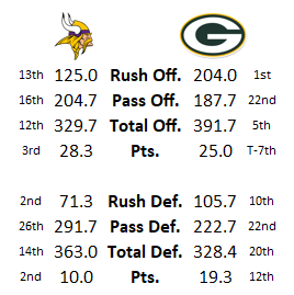 The key matchup will be the Vikings’ 2nd ranked rush defense vs. the Packers top-rated rush offense. If Jordan Love ends up playing, the Packers likely won’t be running nearly as much, having run 90 of their 126 offensive snaps the last 2 weeks (71.4%), but setting the tone early by running is never a bad thing. I believe an ideal ratio would be 60:40 pass-to-run, with Love at QB. With passing more, that likely means more offensive snaps, if Green Bay can run 70 snaps this game that would put the rush attemps around 25-30, which would be ideal.