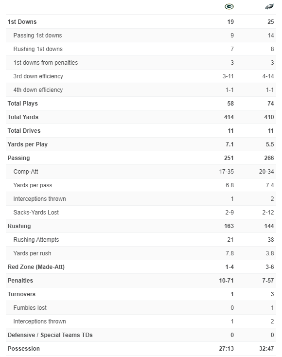 Speaking of the defense, the pass rush came alive, as we expected them to facing Will Levis. Levis is mobile-enough, but not in the same class as Jalen Hurts or Anthony Richardson. The Packers pressured Levis almost all game and sacked him 8 times for a total loss of 56 yards. Don’t expect 8 sacks again, as it hasn’t happened for 20 years, but 3-4 sacks a game is a good target to hit, and essentially eliminates an entire drive of a game (acts as a turnover if you will).