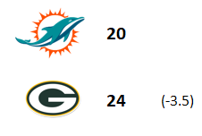 How will this all play out? It’s likely to be a tight, low-scoring game as it often is on Thursday games when neither team has had a full week of rest. Both teams will look to control the ball, Miami with a ton of short/quick passes and Green Bay with the ground game and play action.