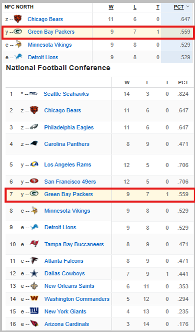 Season: 9-7-1; 2nd in NFC North; 7th Seed in NFC