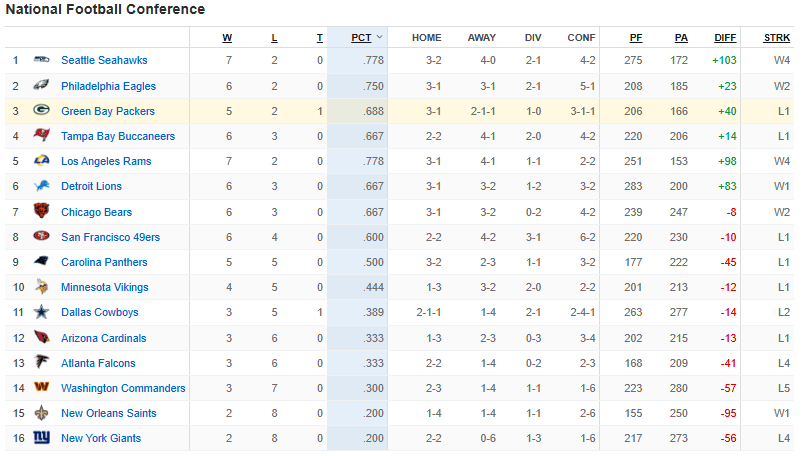 The Green Bay Packers find themselves 3rd in the NFC North and holding onto the last playoff spot (7th seed) in the NFC Playoff Picture. The offense must find consistency and efficiency – and that must come from Matt LaFleur and Jordan Love. While the offensive line bears the blunt of the blame, and no Super Bowl winner has had a bad OL, if the Head Coach and QB are as good as we need them to be they need to overcome the teams’ main deficiency. While it goes against all the adages of the fundamentals of football – but this is the boat we’re in – but, a pass-first offense is the only path forward. Being able to run the ball is paramount, especially in the Red Zone and to close out games in the 4th quarter, but the pass can set up the run and play-action, which is what this OL needs.